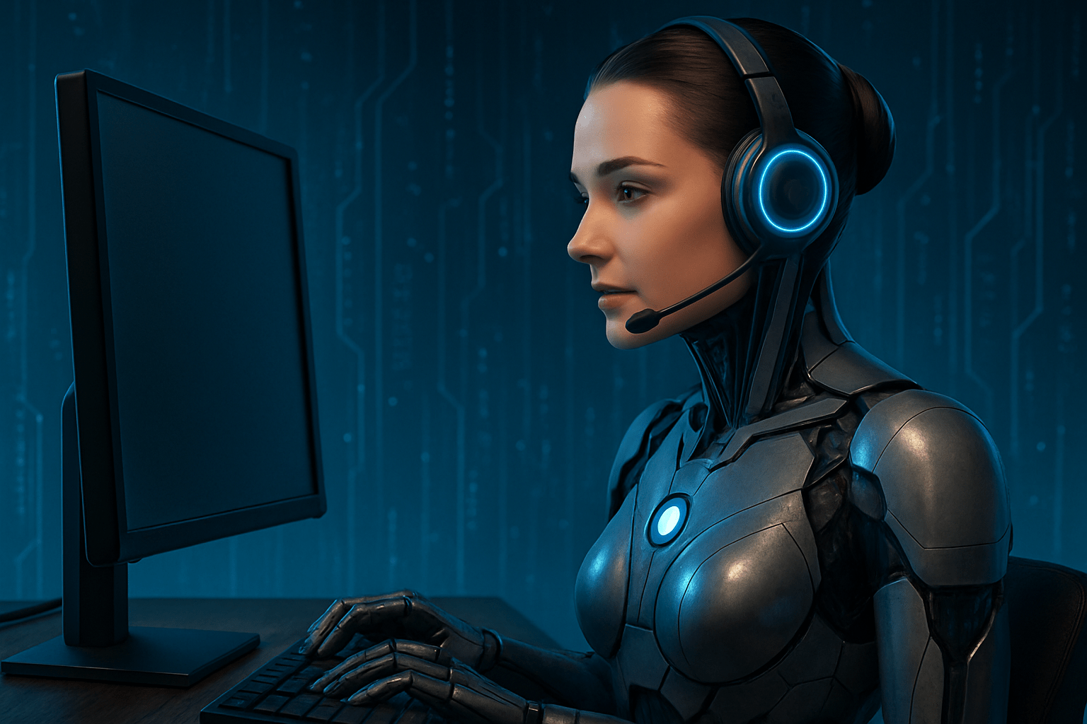 rozmawia z klientem naturalnym ludzkim głosem